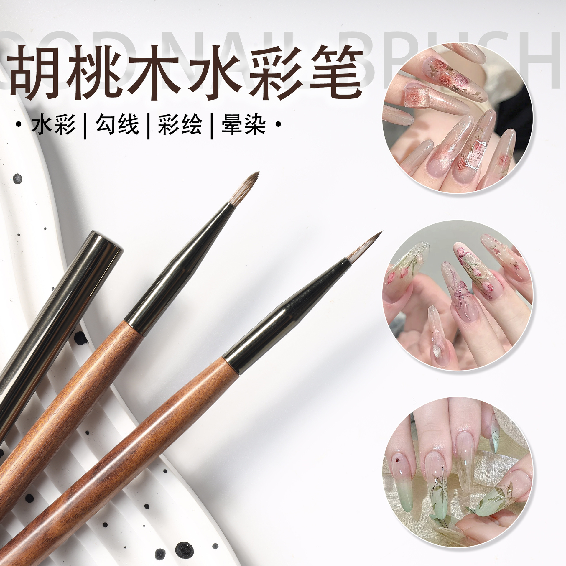 新型ネイルアート用ラインペン、極細プロ仕様クルミ材ペイントペン、長短線、輪郭線、グラデーション専用ネイルペン、卸売