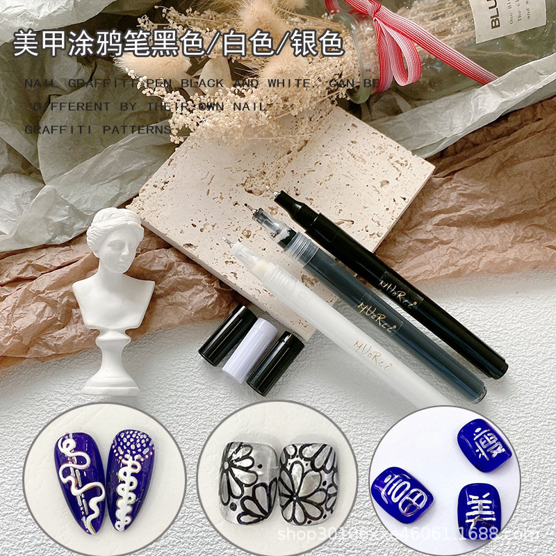 国境を越えて起爆した5本の銃黒金属棒ネイルラベルペン超細い高級線筆画花筆カラーペン