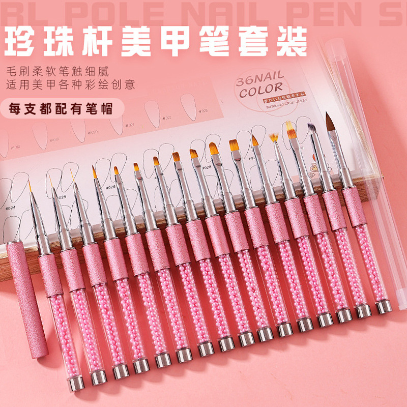 国境を越えたピンクのドリルのネイルペン16本セットのネイルブラシセット