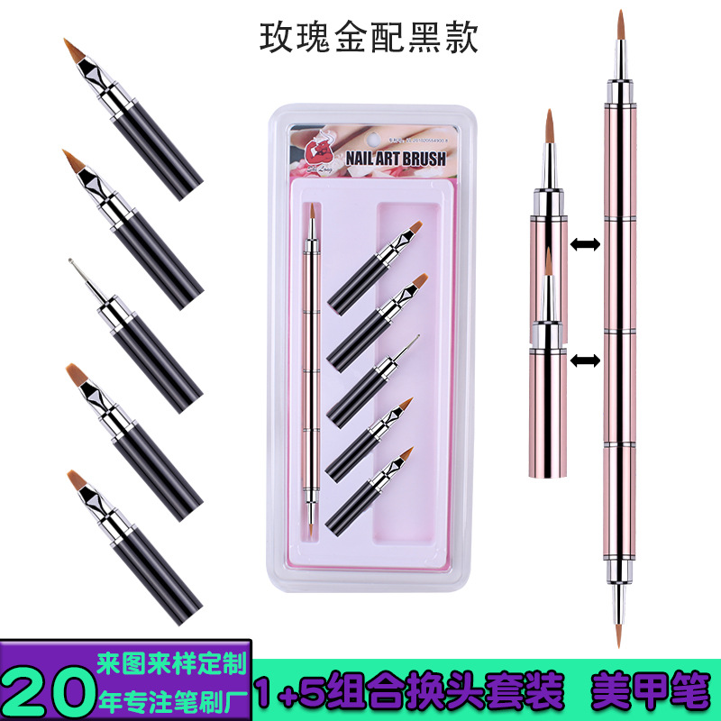 工場カスタム卸売り新型銃黒色5本の金属棒極細美爪筆引き線筆彩色絵筆
