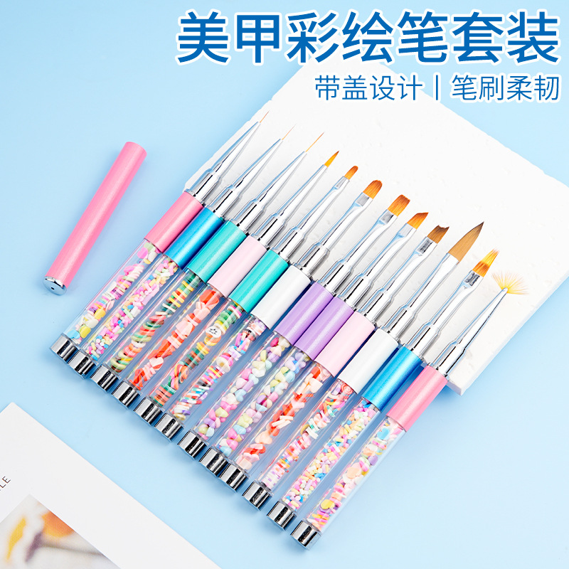 クロスボーダー热い贩売ネイルペンセットカラー漫画モデルネイルラバーペン光ファイバーペングラデーションファンクションペンクリスタルペン