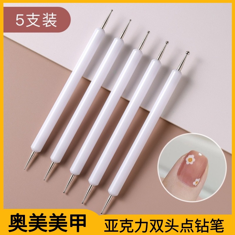 アクリルロッドダブルヘッドネイルポリッシュポイント花ビーズペンdiy5本セットホワイトブラック工場クロスボーダー卸売