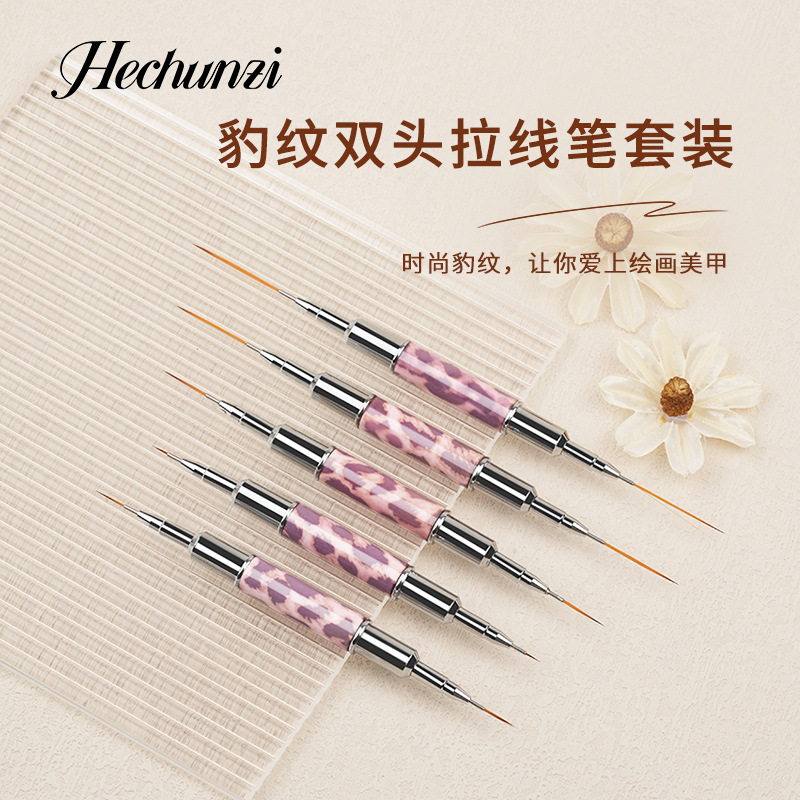 和春子豹紋双頭ネイルペン5本輸入2色ナイロンプルペンパウダー黒豹紋アルミ棒ネイルペン