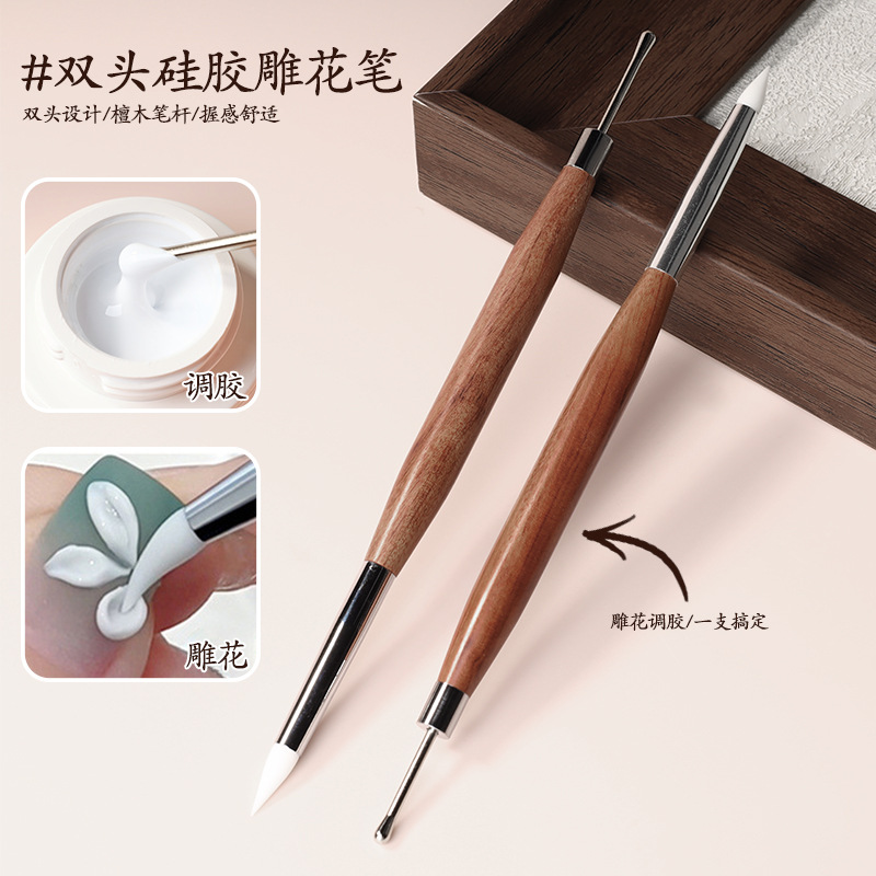 ネイルアート双頭彫刻ペンシリコーンエンボス白檀ペン本体金属接着剤多機能ネイルアートシリコーンペンツール