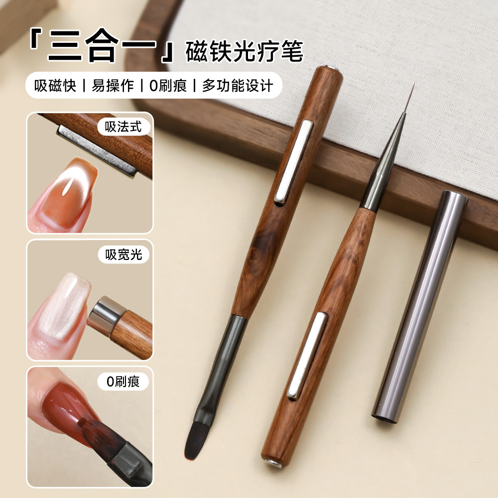 クロスボーダーマニキュアサンダルウッドスリーインワン双頭マグネット光線療法ペンブラシ跡なし猫目マニキュア接着剤特殊ツール