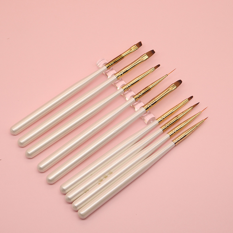 メーカー直販9本の真珠の白い木の竿の彩色の絵の線の絵の筆は目が見えます。