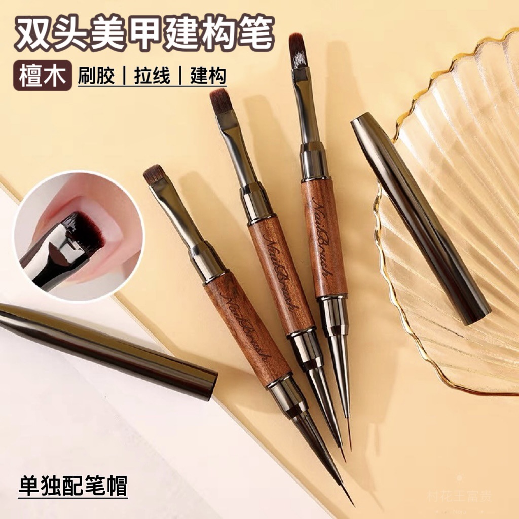 両頭のネイルは筆を作って線のペンを引いて新型の檀木の多機能の筆のブラシの周囲の丸い色の絵の長い構造の線のブラシのゴムを作ります。