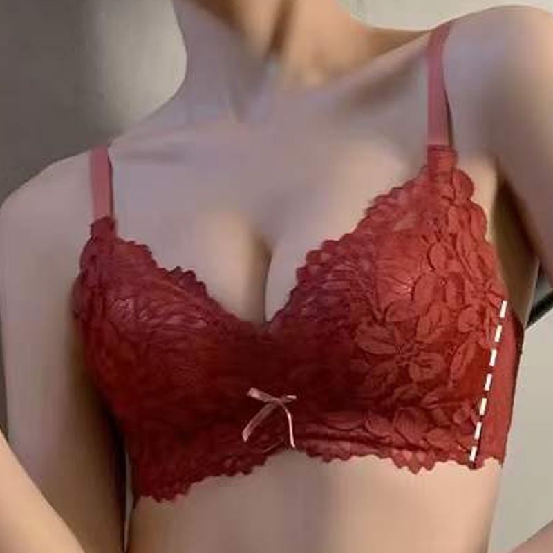 新本命年雲感下着少女小胸が集まって副乳調整型セクシー花びらレースのブラジャーセット