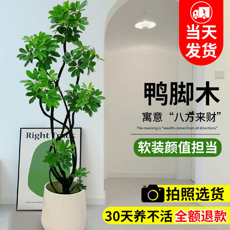 アヒルの足の木のリビングルームの大きな鉢植えの八方の富の本物の形の緑の植物アヒルの足の木のガチョウの足の木の屋内床置き植物