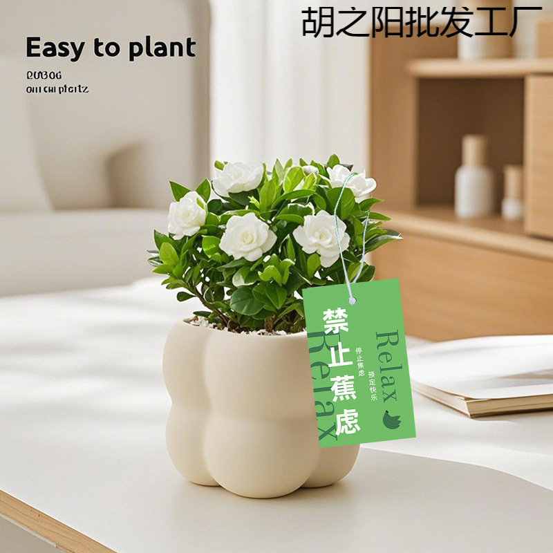 四季咲きの一茎ロリポップクチナシ鉢植え、室内卓上コーヒーテーブル、育てやすい花と緑の植物の形の盆栽