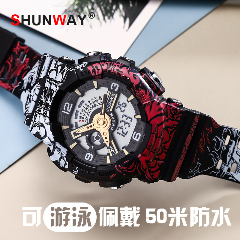 海賊風連名腕時計アニメ青少年学生電子時計男性ファッションスポーツ防水腕時計卸売り
