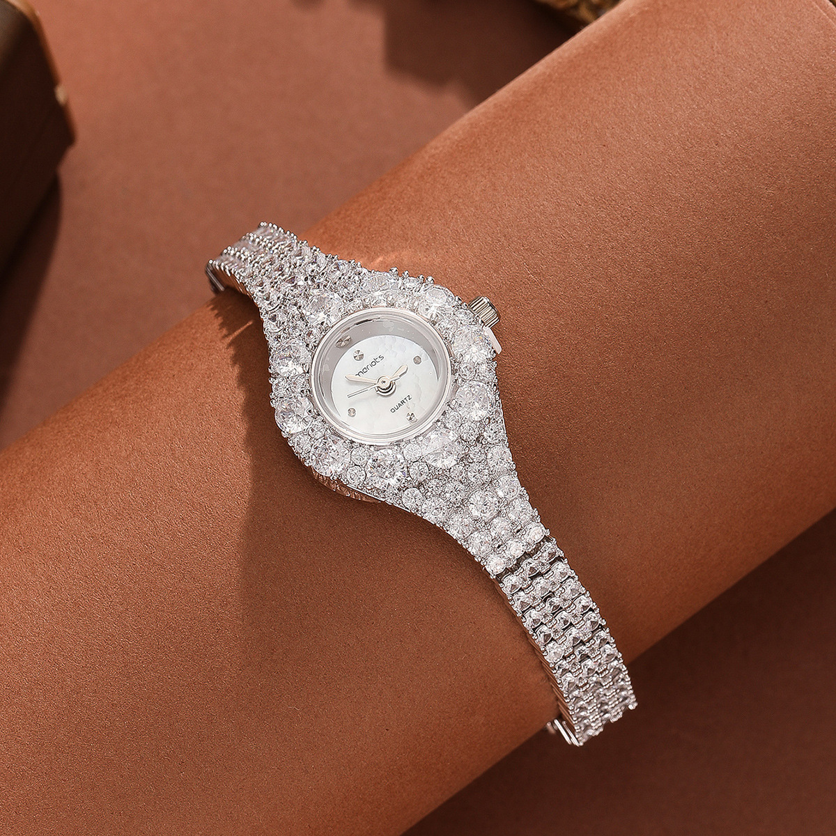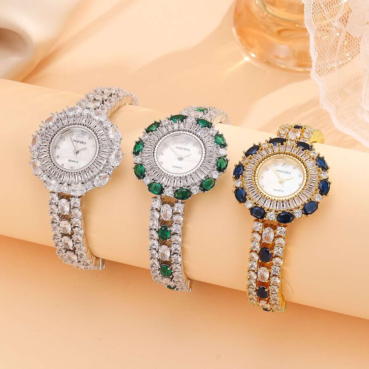 ダイヤモンド付きラウンド型レディース腕時計、自由に調節可能なブレスレットウォッチ、女性用クォーツ時計、卸売、軽奢、軽奢スタイル