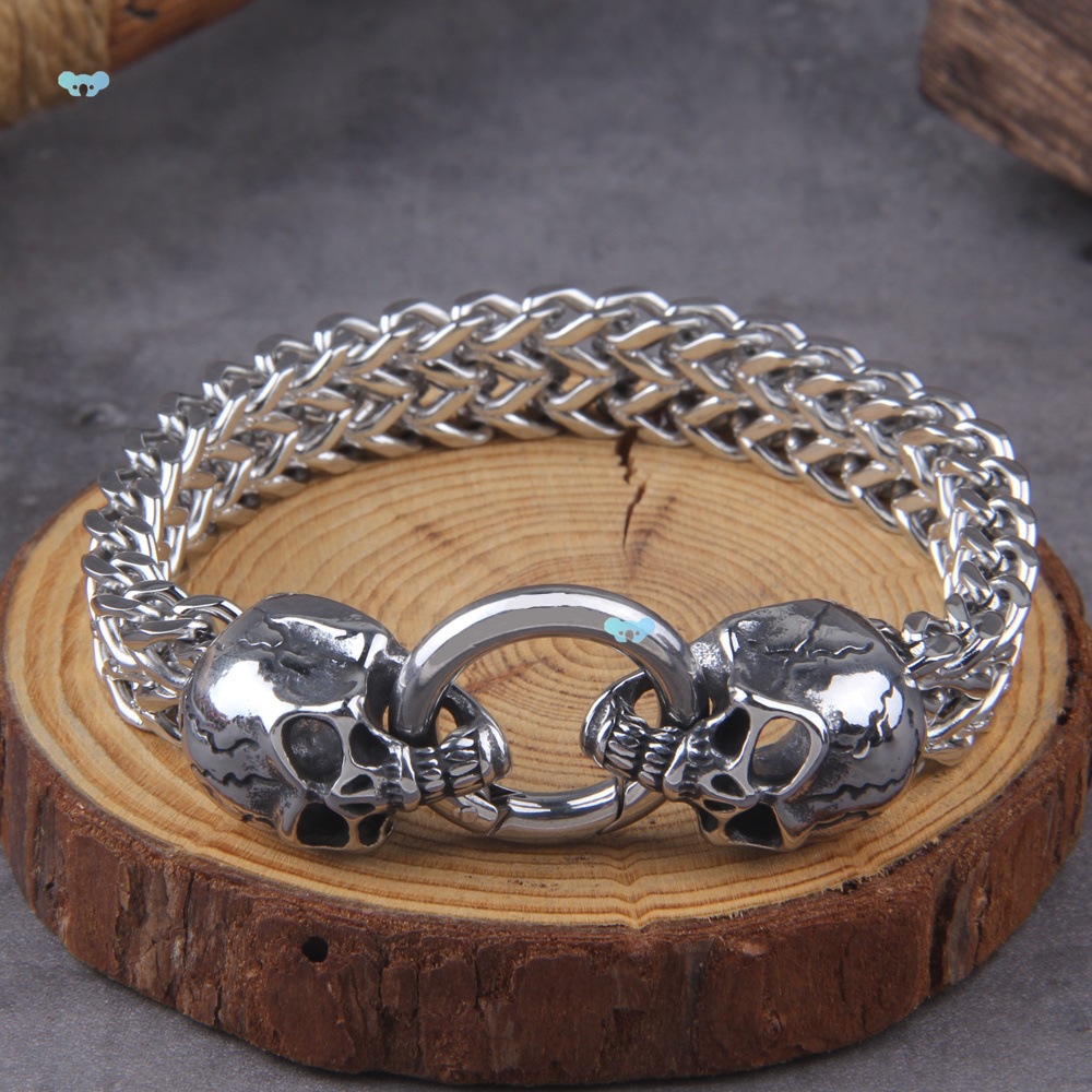 レトロパンクステインスチールダブルウルフヘッドメンズメッシュクロスボーダー