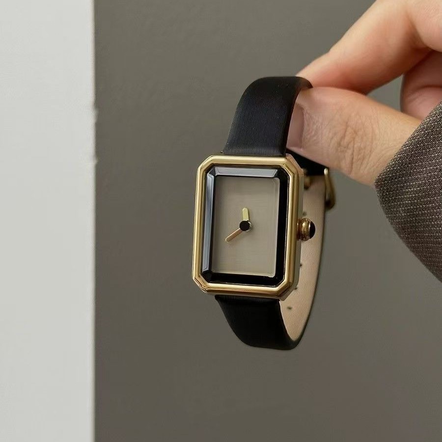 ブラックゴールドの小さな香りのレトロなニッチライト高級レディースハイエンド気質の小さな正方形の時計女性用