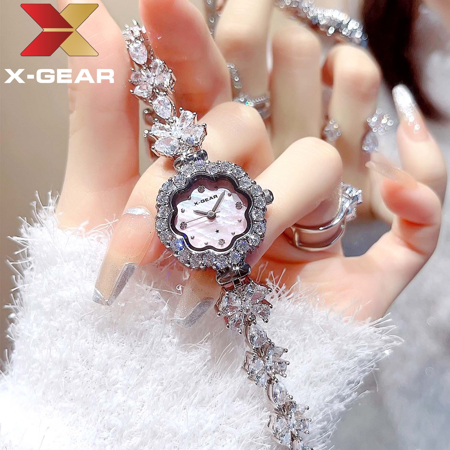 新しいトレンディなファッションラブ型薄いストラップダイヤモンドフラワーレディースウォッチハイエンドライト高級レディースウォッチダイヤモンドジルコン