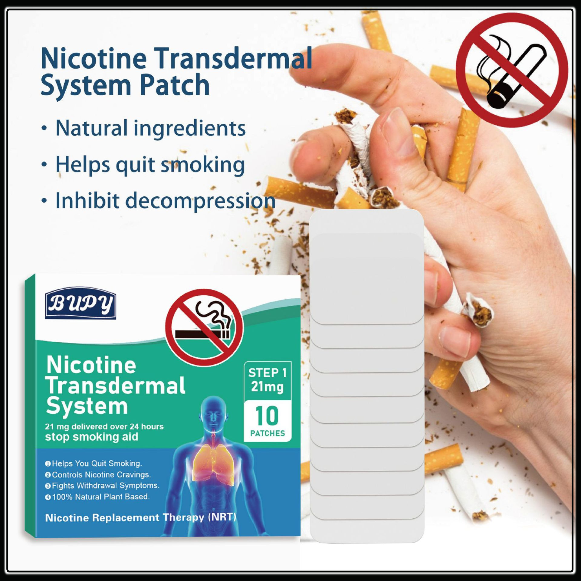 BUPY 禁煙パッチはニコチン代替品で、喫煙中毒を和らげ、禁煙を支援するヘルスケアパッチです。