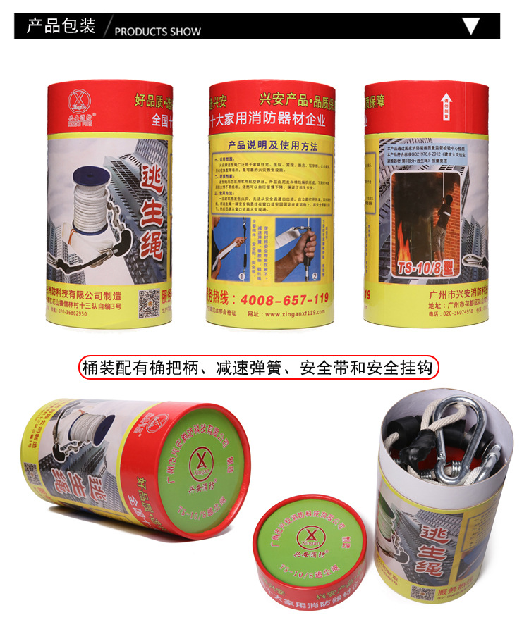 火災応急自己救助避難ロープ、消防ロープ、航空鋼線内芯避難ロープ20メートル興安ブランド