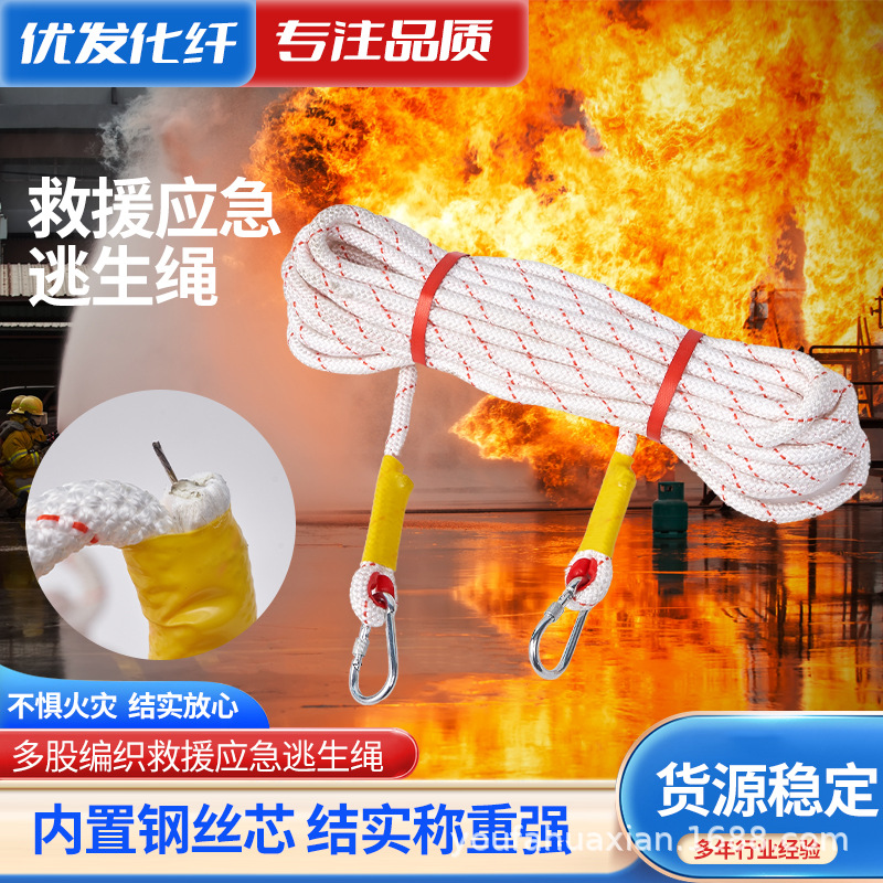 消防救助安全ロープ 高所作業用 ロッククライミング脱出ロープ 高所作業用安全鋼索 高強度