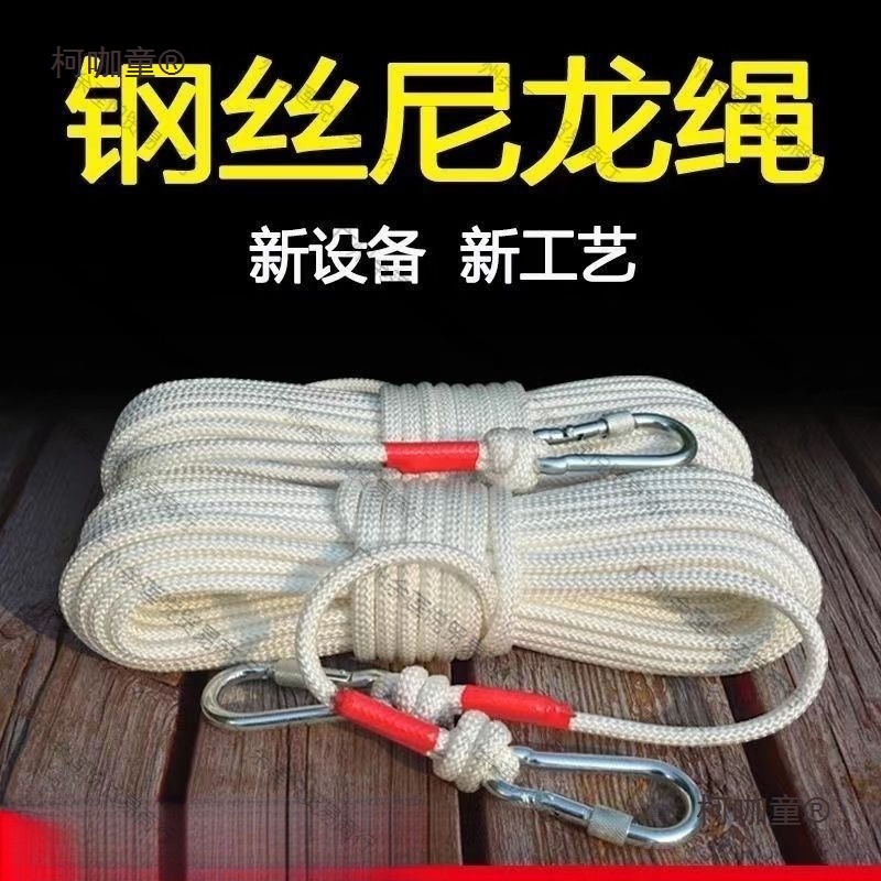 安全ロープ太りワイヤー芯ナイロンロープ耐摩耗性アウトドア登山クライミング高所作業安全脱出ロープ