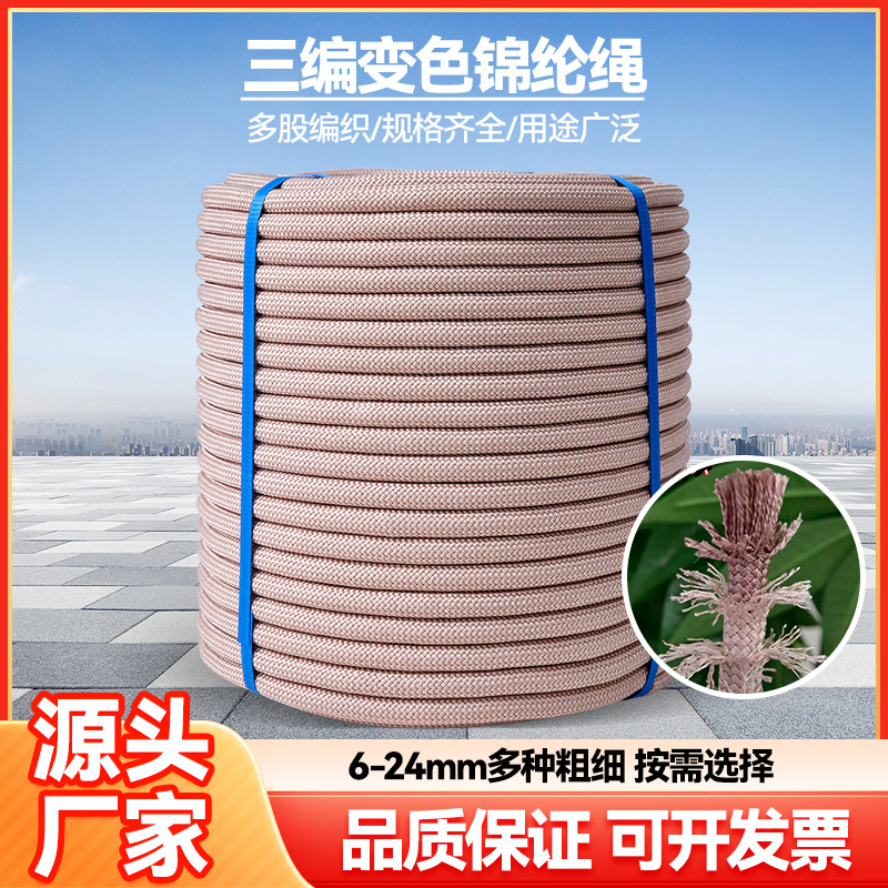 変色ナイロンロープ三層編組安全ロープ高所作業ロープ外壁洗浄ロープ脱出救命ロープ