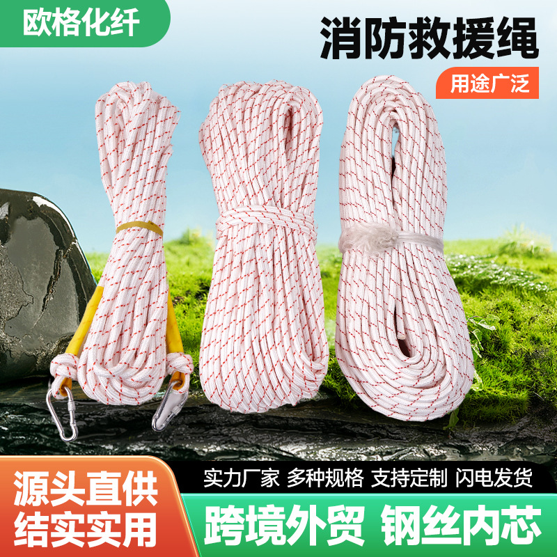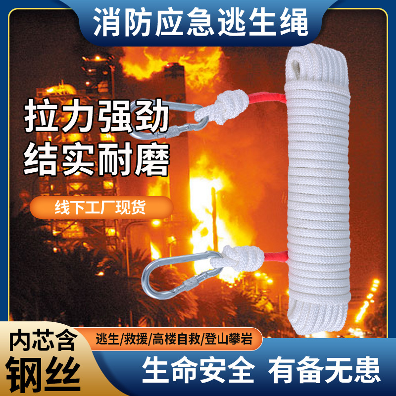 ワイヤー芯ナイロン家庭用安全ロープ緊急脱走消防4点セット救命ロープアウトドア登山防護ロープ