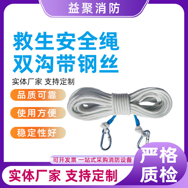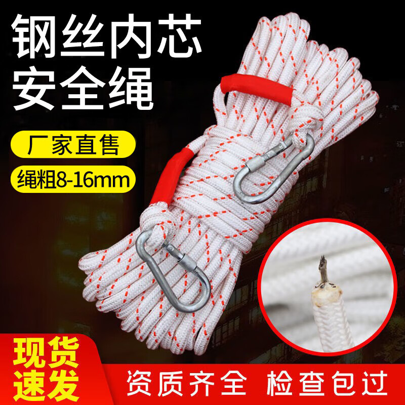 救命安全ロープ二重フック鋼線芯消防ロープ屋外緊急脱出ロープクライミング登山ロープ家庭用ナイロンロープ