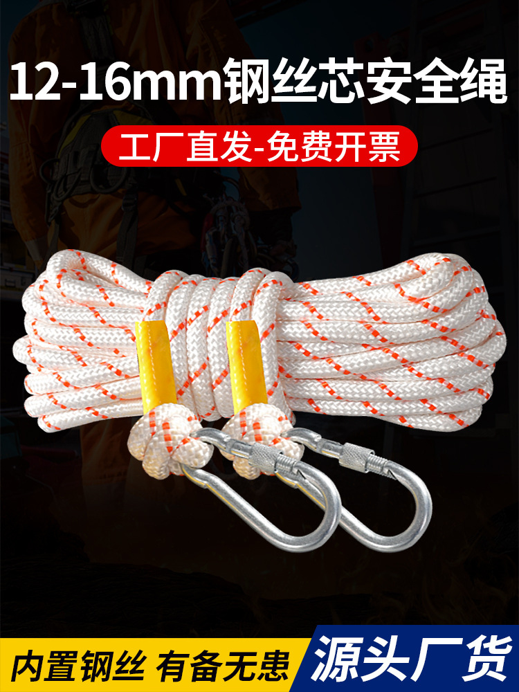 高所作業ロープ太くロープ体屋外開拓登山ロッククライミングポリプロピレン鋼線内芯補強登山ロープ