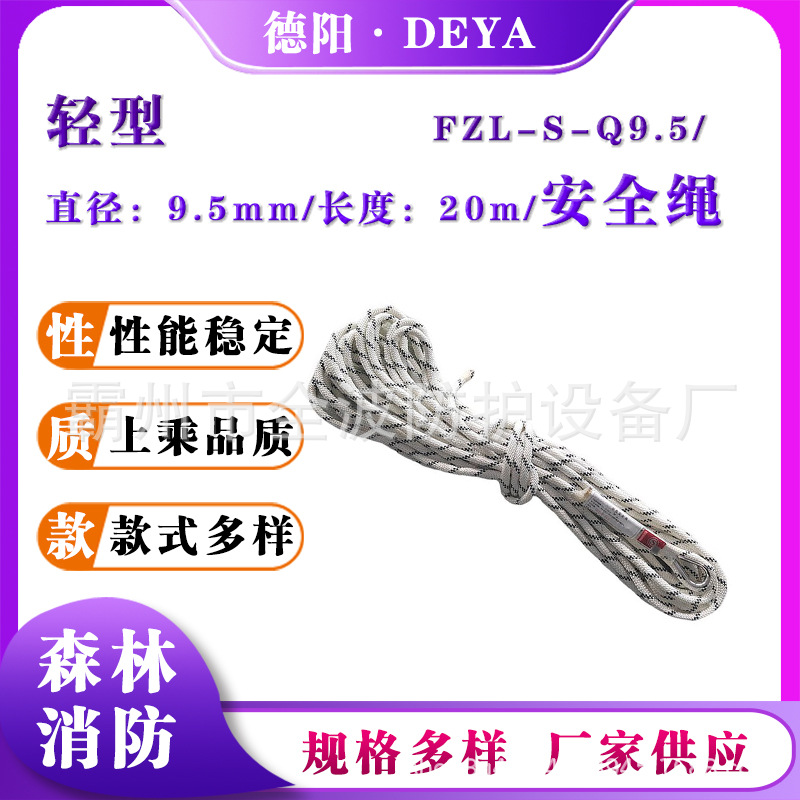 FZL-S-Q9.5軽量安全ロープ9.5mm径落下防止ロープ消防高層レスキュー保護ロープ