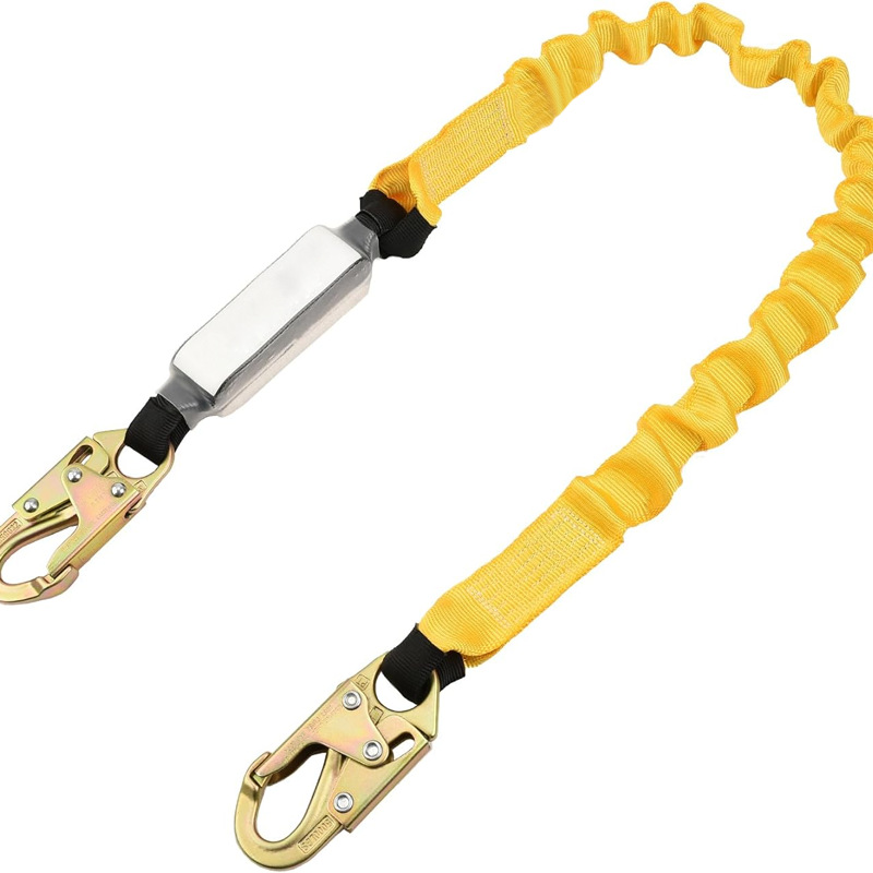 ヨーロッパ式安全ロープ6フィートショックアブソーバー付き伸縮可能安全ロープ付きダブルフックはANSIZ規格に適合しています。