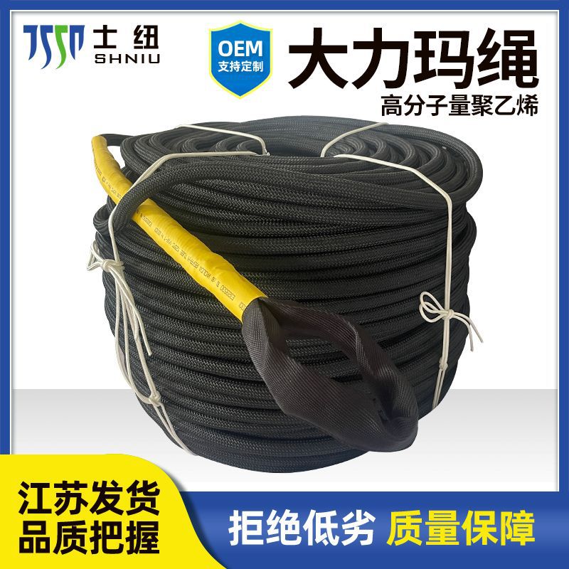 ディニマ縄編み縄黒色電力牽引縄ポリエチレンディニマ縄メーカー難燃性高強度ロープ