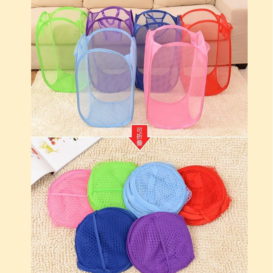 メーカー直販ネット布洗濯かご折り畳み可能浴室収納かご亜鉛メッキ鋼線洗濯玩具収納桶