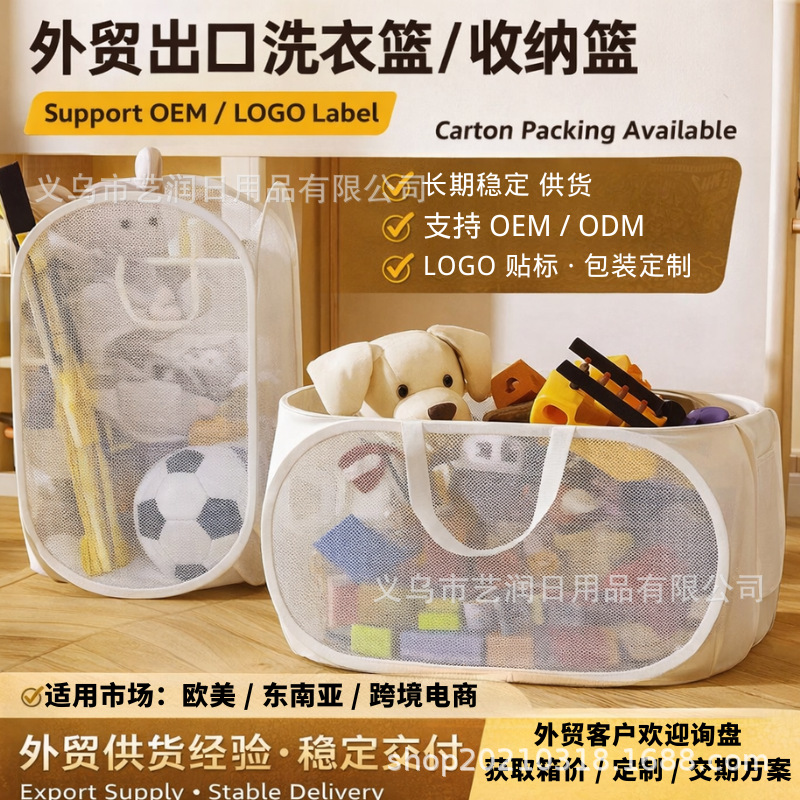 クロスボーダー洗濯物バスケット折りたたみ洗濯物バスケット家庭用収納バスケットメッシュ収納バスケット衣類玩具手提げ収納バスケット