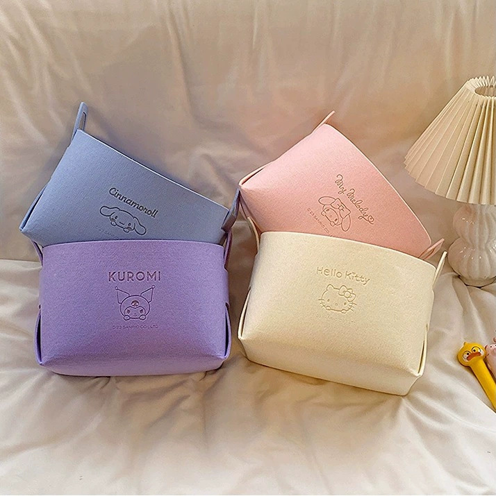 クリーム風のかわいい折りたたみフェルト収納バスケットデスクトップスナック衣類化粧品多機能大容量収納バスケット