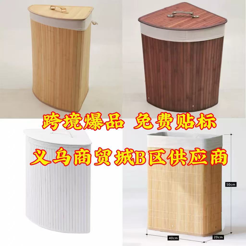 対外貿易の商品ソース竹製家庭用三角折り畳み洗濯かごの洗濯かごには蓋があります。