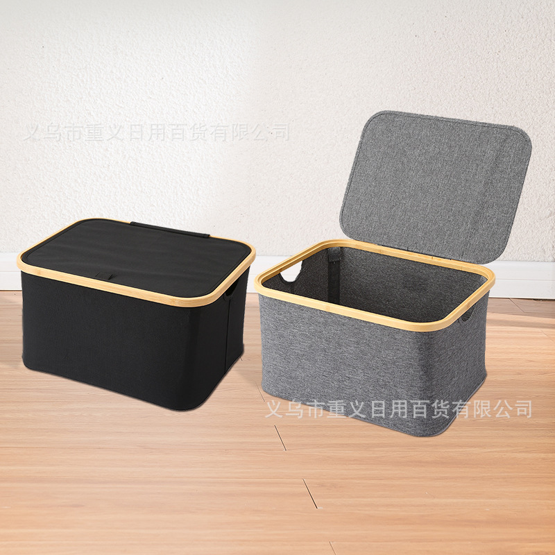 竹製布張りランドリーバスケット 折りたたみ式 家庭用衣類雑貨整理収納ボックス 洗濯かご 大容量 ポータブル