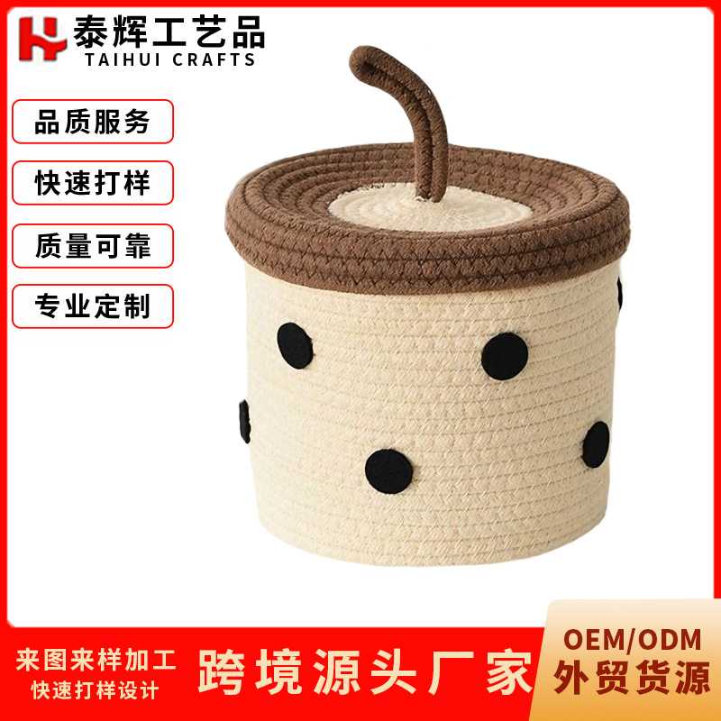 蓋付きクロスボーダー綿ロープ編みバスケット、デスクトップ雑貨、子供のおもちゃ、本、文具、スナック収納バスケット、収納バスケット