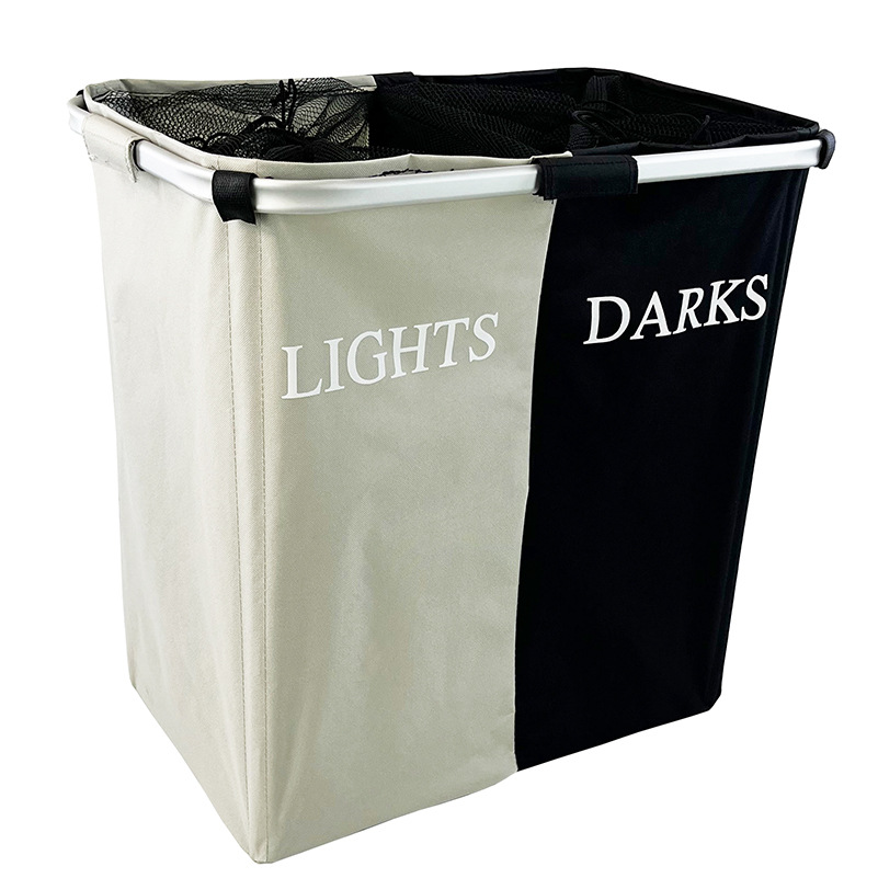 家庭整理オックスフォード布折り畳み可能な洗濯かごアルミ管双格家庭布芸衣類収納2色の洗濯かご
