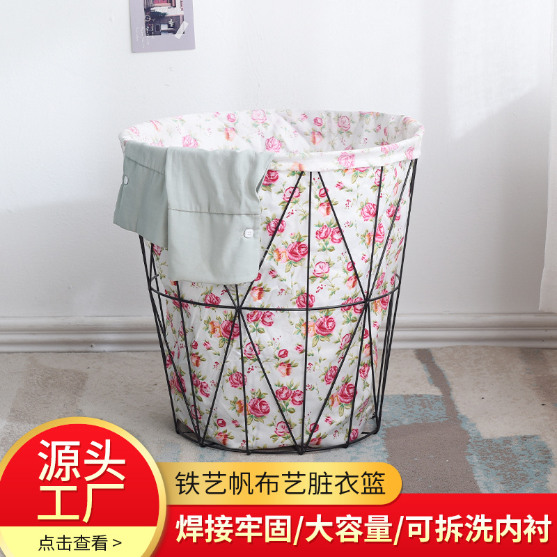 元のメーカーの汚い服はかごの鉄芸の貯蔵かごのキャンバス芸の汚い服のかごの浴室の物かごの色のサイズを収納します。