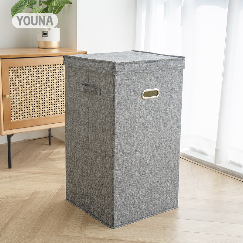 汚れた服のかごの縦型の大きいサイズは折りたたみやすいです。麻布のように汚れた服のかごを収納します。