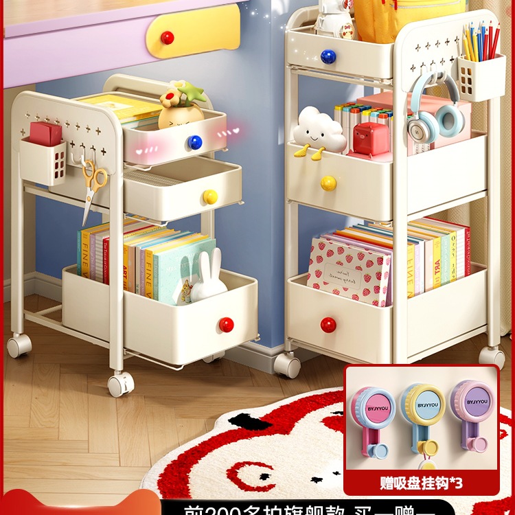 ランドセル収納ラック、家庭用多層テーブル下ホイールキャビネット、本やスナックの収納ラック、取り外し可能なキッチントロリー