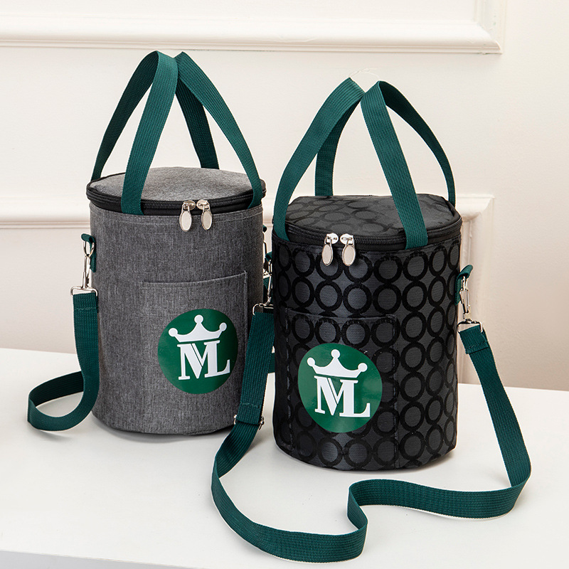 断熱ランチボックスバッグ、厚みのある大容量のラウンドランチバッグ、防水ポータブルバレルランチボックス、アルミホイルランチバッグ