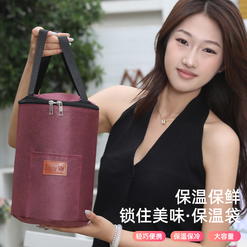 断熱増粘大容量ラウンドランチボックスバッグアルミ箔ポータブル防水バレルランチバッグオフィスワーカーランチバッグ