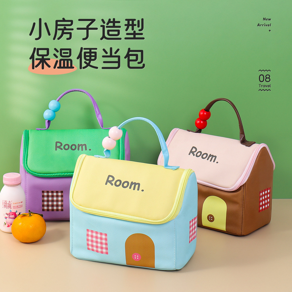 通勤かわいいハウスランチバッグ学生ランチ断熱厚みのあるバッグ大容量ポータブル防水ランチボックスバッグ