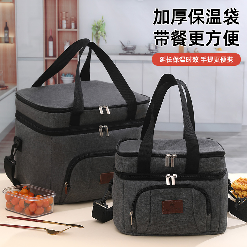 保温二重ポケット付き大容量ランチバッグ、学生や会社員向け弁当バッグ、アウトドア用携帯ランチバッグ