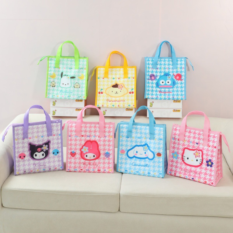 かわいい格子アニメ大容量ジッパー軽量学生保温袋弁当箱バッグ