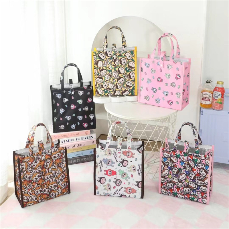 保温ランチボックスハンドバッグ、会社員や学生が持ち運ぶための防水・防油・厚手のランチバッグ、アルミホイルバッグ、キュートな漫画柄