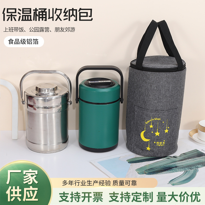 アルミ箔保温袋円形保温桶弁当箱収納バッグ中号携帯保温防水弁当バッグ
