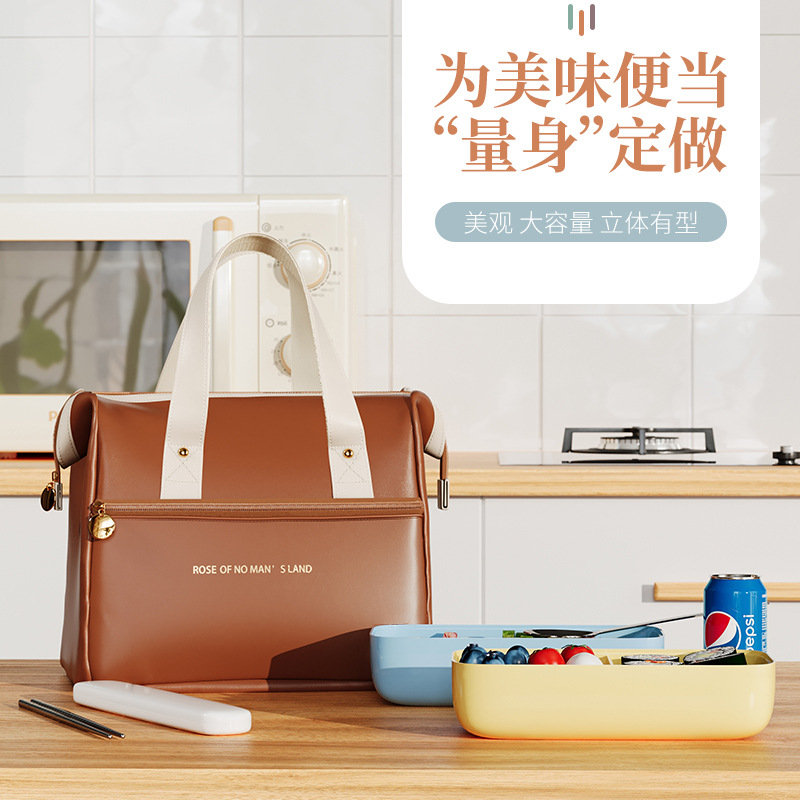 新型高颜値食事バッグ防水式手提げ弁当箱袋PU革弁当バッグ厚手アルミ箔弁当収納バッグ