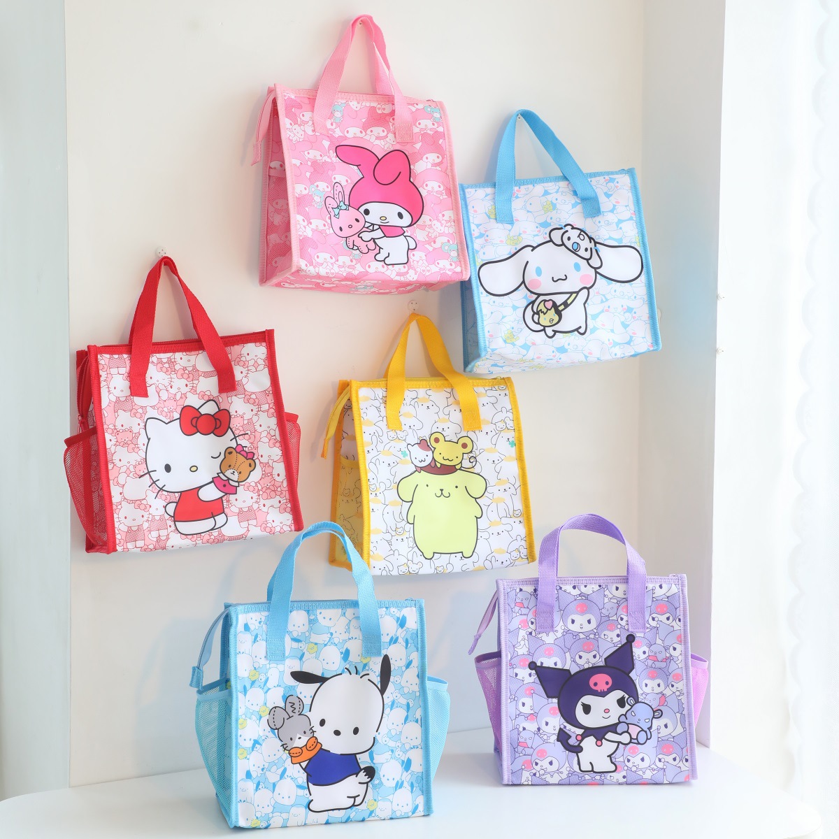 大容量の四角いアニメは携帯型の学生弁当袋を持っています。