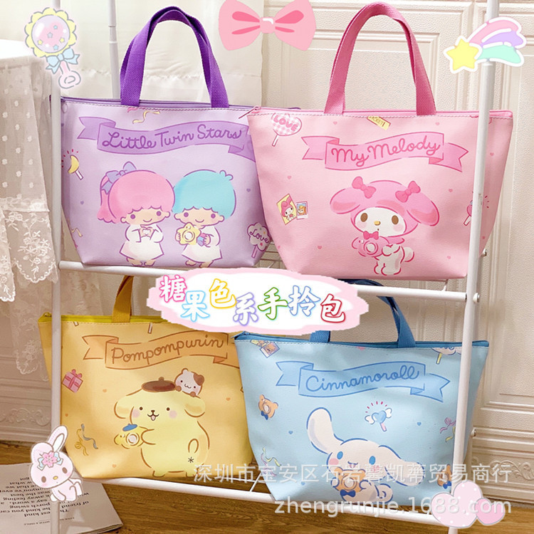 かわいいキャンディー系ハンドバッグ玉桂犬クロミショッピングバッグpu革弁当箱袋大容量マミーバッグ